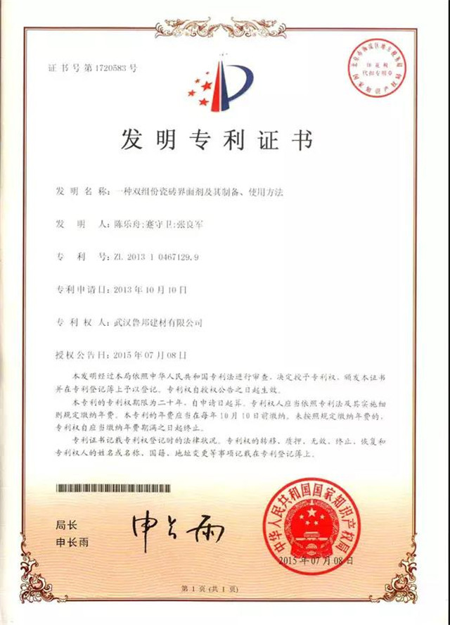 本發(fā)明的目的在于克服因現(xiàn)有瓷磚特別是玻化磚因吸水率低、界面光滑導致瓷磚脫落的問題,提供一種改善瓷磚界面性能和施工性能的雙組份瓷磚界面劑,提高了界面劑與瓷磚粘結強度。另外,在保證施工時間的同時,縮短了凝固時間,有效改善了施工性能,并保證了瓷磚的長期美觀性。